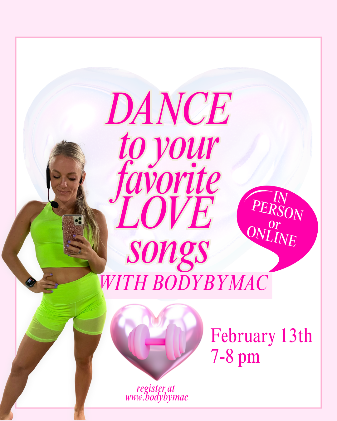 No partner needed — just bring your energy and be ready to dance, laugh, and burn calories while having a blast. Whether you’re celebrating love, self-love, or just love a good workout, this class is for YOU.